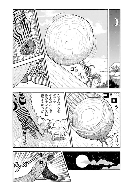 「最強」をかけて闘うのは、「百獣の王の中の王」ライオンのキング・オブ・キングスと、「ゼブラ革命の闘士」シマウマのチェ・ゼブラ。