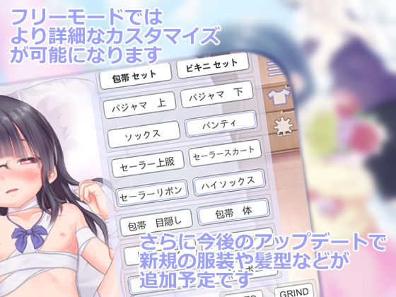 服装はパジャマ、セーラ服、包帯縛り、…等があり、正常位と後背位両方で選べます。