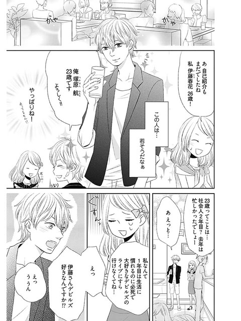 遠距離が原因で元カレに浮気され、今後こそはと近所に住む男の子を探しに地元の街コンに参加した春花(はるか)。そこで趣味も合い近所に住んでいると言うイケメン・航(わたる)と出会い、ついに幸せGET☆と喜ぶ。