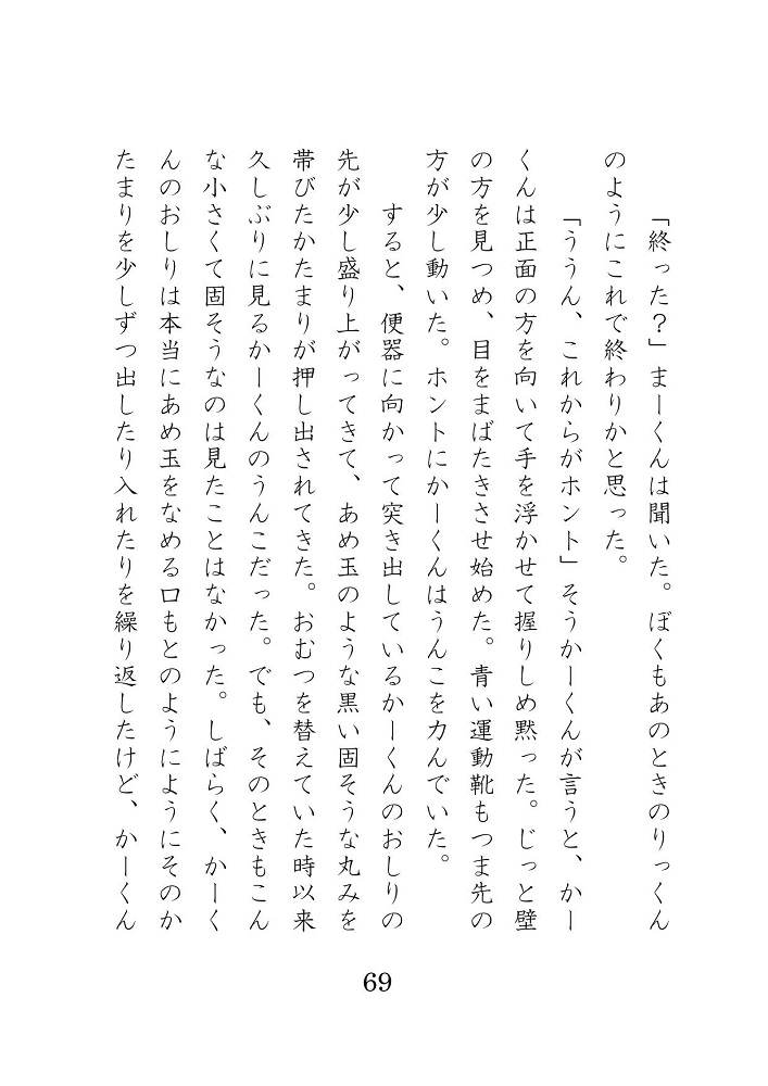 あと、トイレにドアが取り付けられていない新築の家の和式トイレで○一のいとこのかーくんがうんこする「かーくんのうんこ便所」も収録。