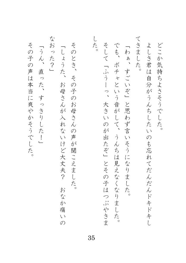 よしきくんは和式トイレでのうんこが苦手な○三の男の子で、入学以来二回もトイレで失敗しています。