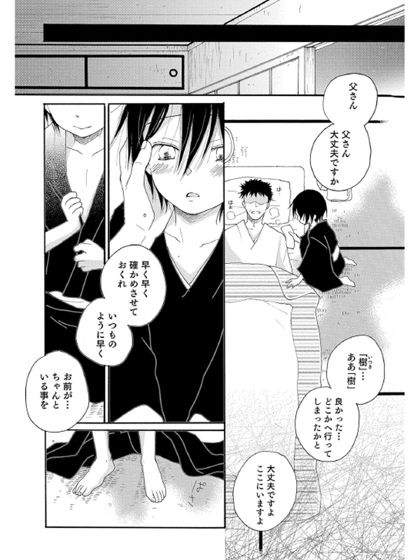 ふと気づいたら近所に見知らぬ親子が住んでいた。 なんでも母親を亡くして体の弱い父親を息子が看病しているらしい。 でもその父子には秘密があって……。 同情して見舞いに行った主人公はある日それを見てしまうのだったが……!? ※ オトコのコ HEAVEN'S DOOR 9 収録作品
