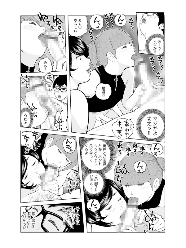 友達の母に性器の性能を気に入られセックスにいそしむ主人公。今日は趣向を凝らすということで息子が女装して二人に加わる。