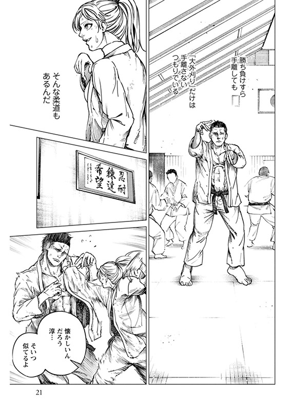 華奢で強気な柔道少女が屈強な男どもに、理論とスピードとかけ引きとタイミングで勝ちに行く! 著者の経験と思考と情熱に裏打ちされた本格派の柔道コミック。少女、淳(じゅん)の真っすぐなまなざしと投げ技で、読む者の既成概念と視界がひっくり返る爽快な読み味です! 今巻では淳がいよいよ柔道界に君臨する世界王者と「野良試合」で対戦します。