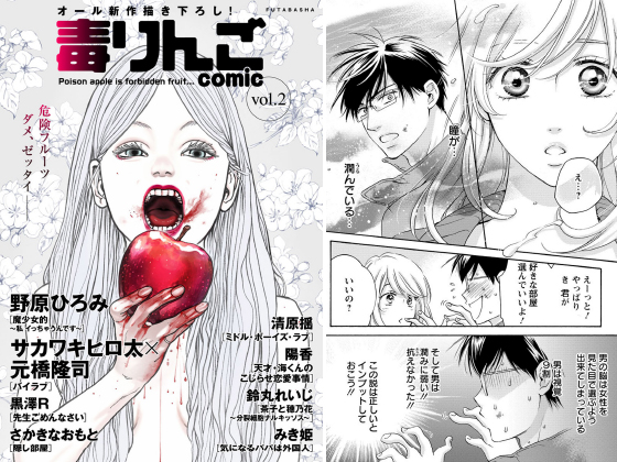 毒りんごはおとぎ話の世界では白雪姫を仮死させた危険な果物。しかし、アダムとイブの昔から人は禁断の果実の誘惑に魅了され続けている――。 『毒りんごcomic』は日常から飛び出たい願望を持つ男と女の心を惹きつけてやまない、甘くてピリリと痺れる作品が満載のデジタル雑誌なのです……。 ウワサのオール描き下ろし月刊電子雑誌、『毒りんごcomic』創刊第2号目!!
