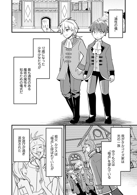 “最強”を目指す一族に生まれたイグニ。彼は魔術適正を判別する『適正の儀』にて、初級魔法のファイアボールしか使えないことが判明する。その後、家から追放されたイグニだったが、かつて“極点”と呼ばれ、最強の一角だった祖父と再会し…。 「モテたい」一心で、最強へと至った少年による学園ファンタジー、ここに開幕!