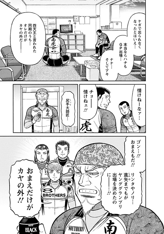 ガッツ溢れるガチンコ競輪漫画の金字塔! グランプリ開催でのGII戦に向け、士気を高める川崎南虎会の3人。グランプリを大怪我で辞退した兄の想いを背負ってヤンググランプリを走るノリ。そして、骨折からの復帰を一発勝負にかけ、グランプリを走る秋谷とも見えない勝負をするリンタ――。 それぞれの“グランプリ”に向け、漢たちは照準を合わせる!