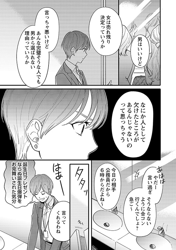 6年前に恋人と別れて以来、仕事一筋で生きてきたキャリアウーマンの芦川理紗子。彼女は「仕事ができてかっこいい」と周囲からの評価も高い。だが35歳の誕生日を迎え『35歳独身女性』となった途端、その評価は一転。「その年になっても結婚していないなんて…何か人として欠けたところがあるんじゃないの」と陰口を叩かれるようになってしまう――。