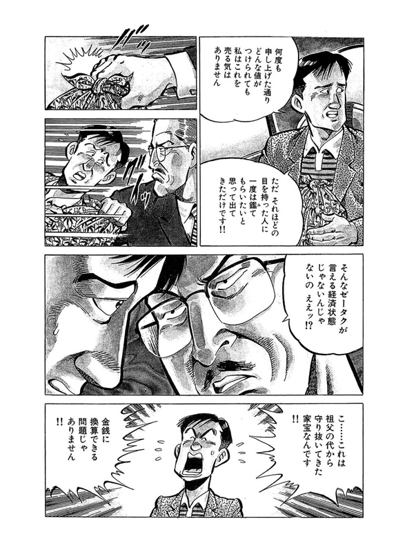 借金のかたに信楽の骨董品を持ち込んできた男と、金の貸主の秘書。観介は一瞥をくれただけで千五百万円と鑑定する。喜ぶ秘書だったが、持ち主の男は頑なに売ろうとしない。そのやり取りを見た観介は…?!