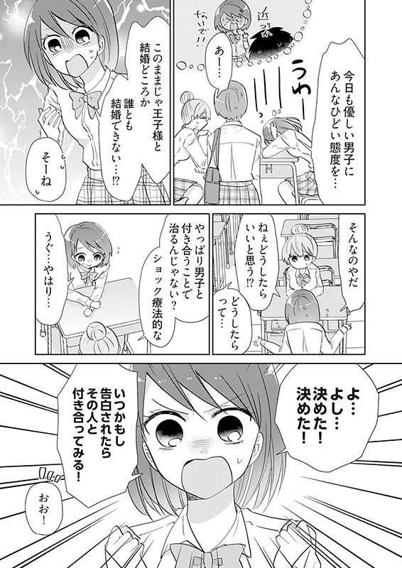 中学生の時に露出狂に襲われて男アレルギーになった小林亜子は、男性を前にすると蕁麻疹が出る体質になってしまい、まともに話すこともできなかった。