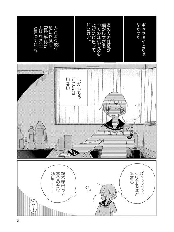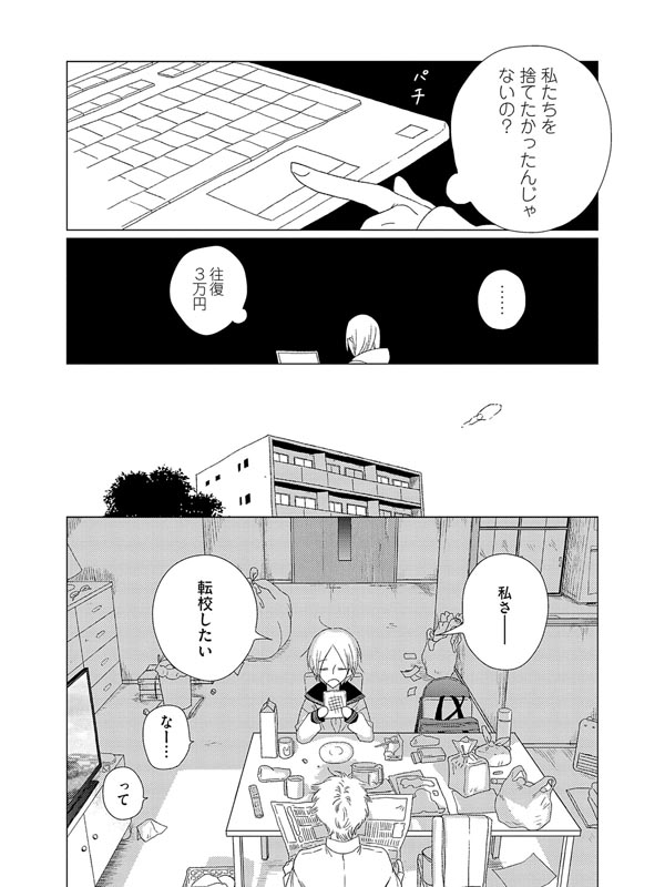 母親が失踪し、小学校卒業と同時に父親と二人暮らしになったイズミ。困ったことは特に無く、かえって平穏な生活を送っていた。しかし従兄弟の夕からSOSが届く。 親への絶望、将来への不安、羞恥心と世間体──。振り回される子どもたちが踠きながら進む物語。 電子版限定特典として描き下ろしイラスト1枚付き。