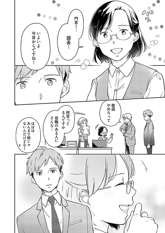 無趣味で無特技、気付けば事務方一筋18年の坂上つぼみは、40歳の誕生日前日に急遽会社の展示会に駆り出される。不慣れな仕事で戸惑うつぼみを助けてくれたのは、12歳年下の営業部のホープ、中嶌航平だった。