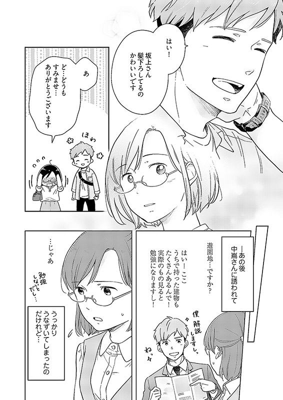 無趣味で無特技、気付けば事務方一筋18年の坂上つぼみは、40歳の誕生日前日に急遽会社の展示会に駆り出される。不慣れな仕事で戸惑うつぼみを助けてくれたのは、12歳年下の営業部のホープ、中嶌航平だった。