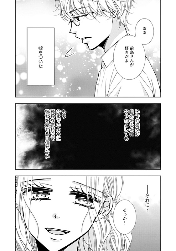 雲の香織への、香織の東雲への、そして千夏の自分へのまっすぐな愛を知れば知るほど、自分のような最低な人間に千夏に愛される資格はないと考える小野。