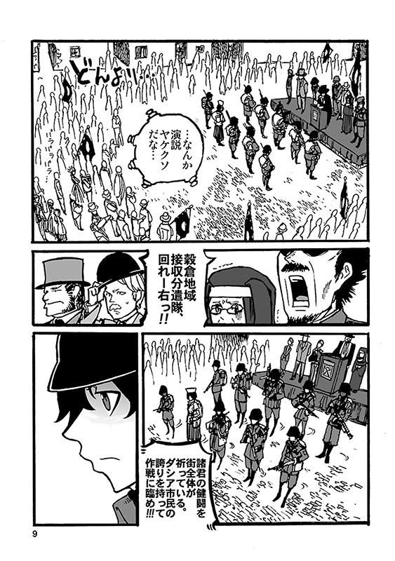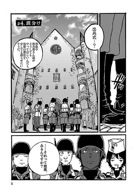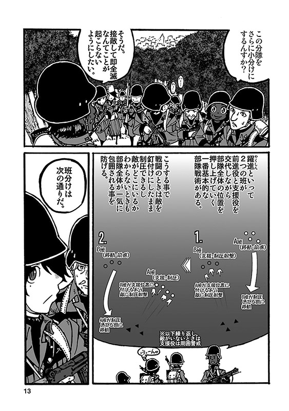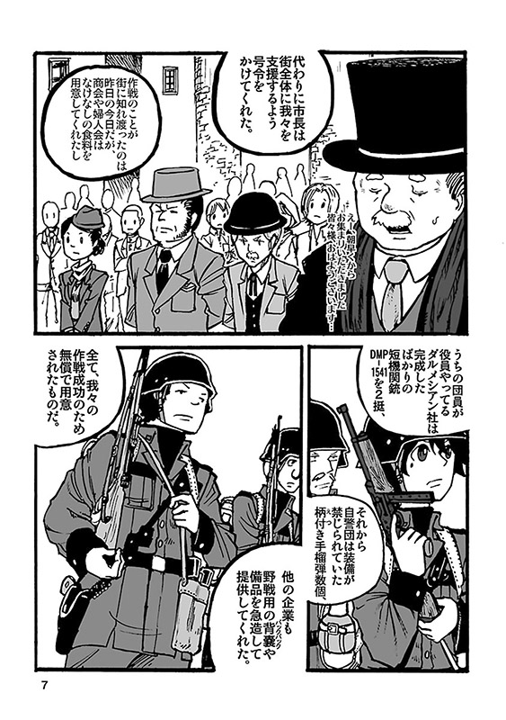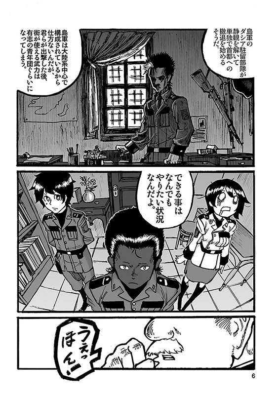 個人WEBサイトで長期連載中の本格ミリタリーコミックを待望の単行本化! 島で起きた反乱軍の蜂起により、街は物流を遮断され、深刻な食糧難に陥っていた。事態を重く見た市長は、自警団に対して、穀倉地域の接収を命じるが、そこは既に反乱軍の拠点と化していた…。