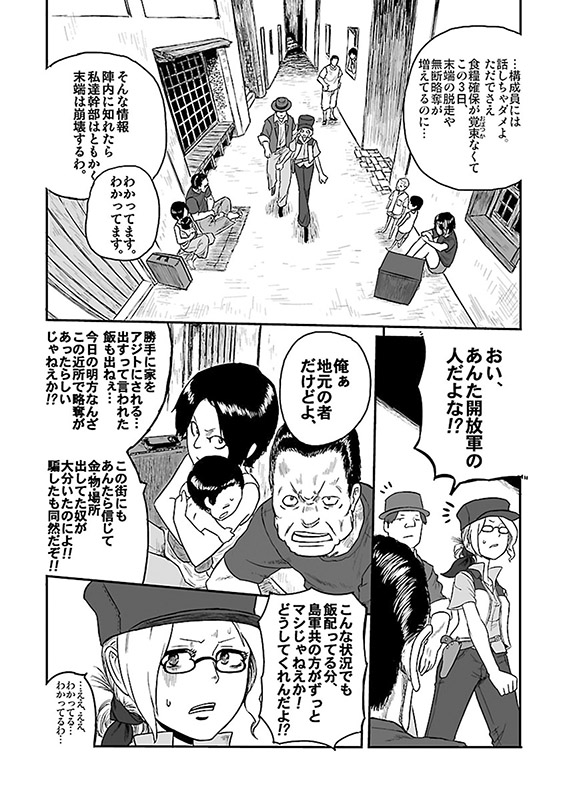 個人WEBサイトで長期連載中の本格ミリタリーコミックを待望の単行本化! 島軍と開放市民軍の睨み合いが続く街、カゲリザカ。地元自警団員からの救援要請に応じて、街を訪れたソフィアとモンドだったが、出迎えに現れた人々は何故かソフィア達へ銃を向けた。