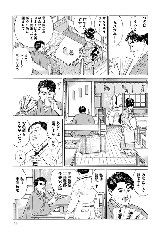 ハレー彗星が長い不吉な尾を曳いて地球に接近したのは、明治四十三年だった。彗星の淡い光芒とともに歴史の舞台を横切った秋水、須賀子、寒村、そして血気に満ちた不運な青年たち――。明治から現代を照射する関川・谷口コンビの力作第四部。