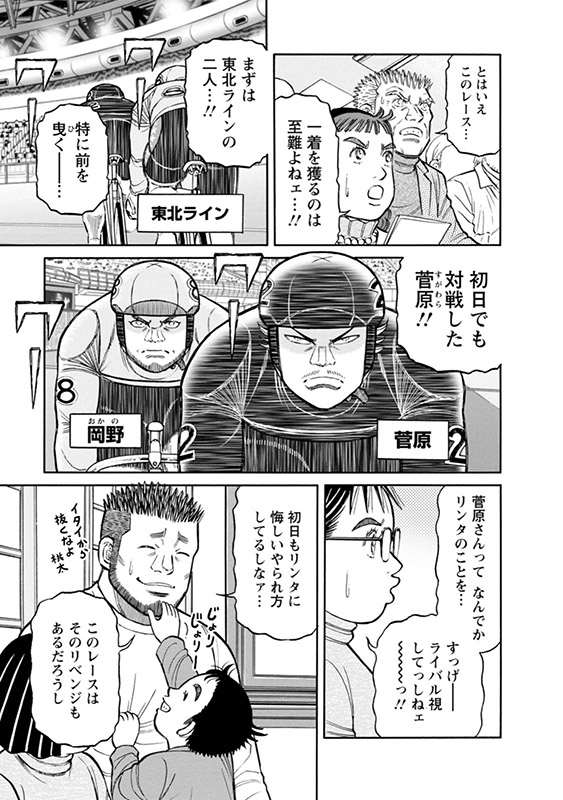 ガッツ溢れるガチンコ競輪漫画の金字塔! 苦境から“完全再誕生”を果たしたリンタが挑むGI“競輪祭”!! 賞金ランキング上位でのGP出場を目指し、リンタは準決勝へ!!! ここで勝っても賞金ランキングは変わらない、しかしここで全てが変わる!? プレッシャーを背負い、レッドゾーンを超えた走りでリンタの身体は…。 寒川・ゴンゾら同期対決も熱い第26巻!!