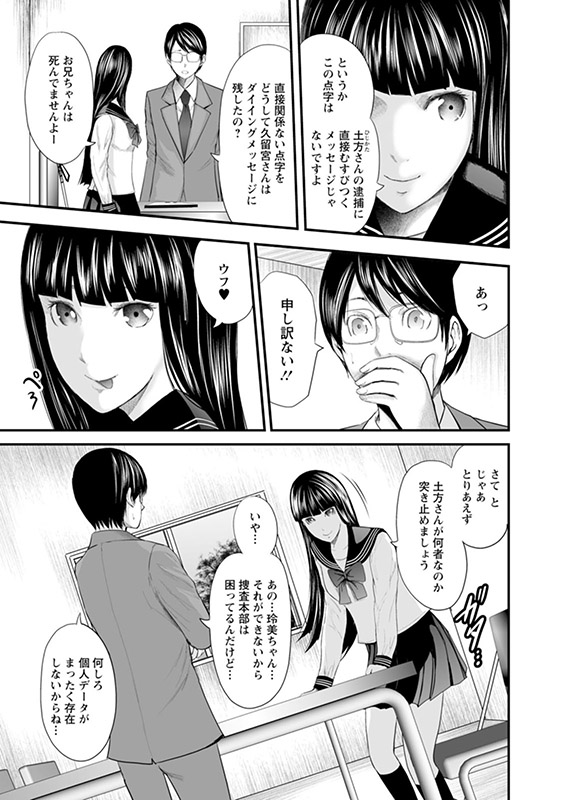 すぐに事件の手口が10年前、小部数発行された小説『ヴェクサシオン』に酷似していることが判明。久留宮が相棒の新人・緒方と一緒に向かった場所は、久留宮の妹・玲美が住むマンションの一室。視覚に障害を持つと思しき玲美。だが、いままでの猟奇事件はすべて彼女が解決してきたのだという。