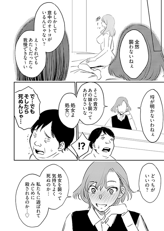 様々な伝承まつわる孤島、姫女島。学生たちは先日の大地震により被害を受けた姉妹校の復興のため、ボランティア活動に訪れた。しかし、そこで彼らは凄惨な光景を目の当たりにしてしまうのだった。女はうつろな瞳をして男を漁り、襲われた男は干物のように枯れ果てて死んでいく…。