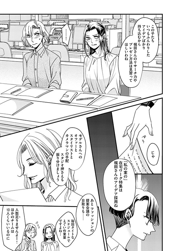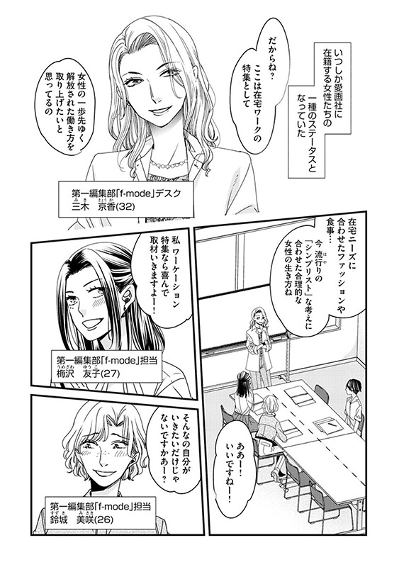 老舗総合出版社・愛画社の漫画編集部に所属していた編集者・梶田玲は、ある日、人気ファッション情報誌「f‐mode」を手掛ける第一編集部に異動してくる。