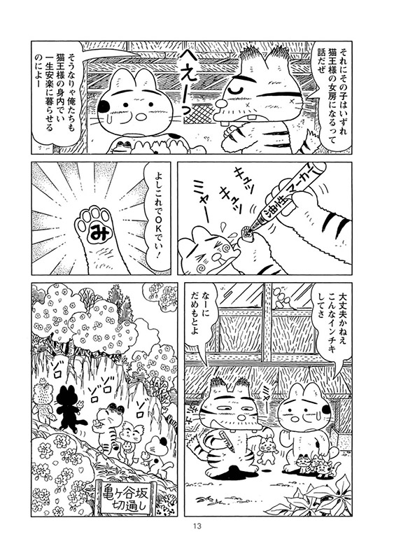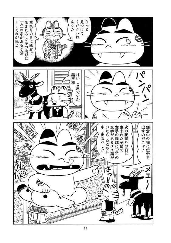 魔力を持ち数百年もの間生き続けている、亀ヶ谷の猫王は本作の人気キャラクター。猫王には運命のメス猫みどりさんという大切な伴侶が居るのだが、その寿命は猫王ほどには長くなく、悲しい別れの時を迎えようとしていた。