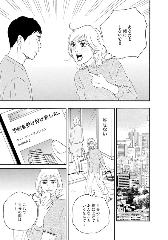 篠崎に惹かれつつも、なんとか理性を保っていたしずくだったが、一方で、実はテニスサークル仲間の鮎川真奈美(27・既婚者)と深い関係になり、W不倫状態に。
