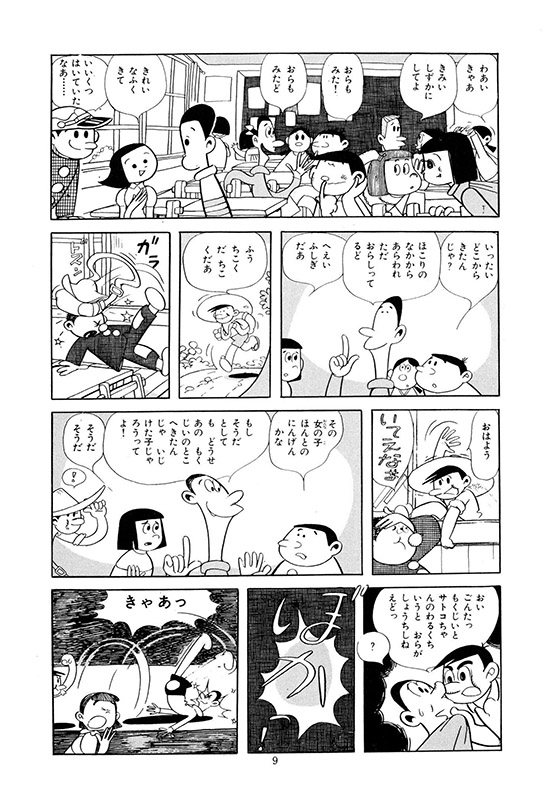 表題作ほか、「サトコ日記」等シリーズ、「虹の中の少女」「みかづきの歌」「親子鳥」「白い雲は呼んでいる」「つたとバレー靴」「王さまと私」「あだうち狂時代」「少年0戦隊」とカラーイラストを収録。