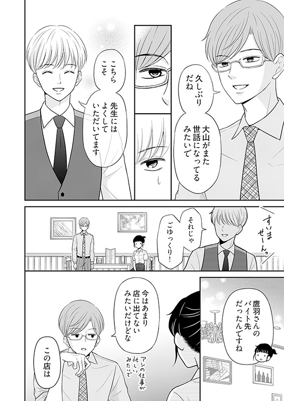 大山先生の原稿をなくしてしまった一件で編集長から謹慎命令を出されてしまい反省中の猪狩。そんな中、落ち込んでいる猪狩を励ますために編集長は猪狩を飲みに誘う。しかしその飲みに行った店のスタッフには鷹羽がいて…!?