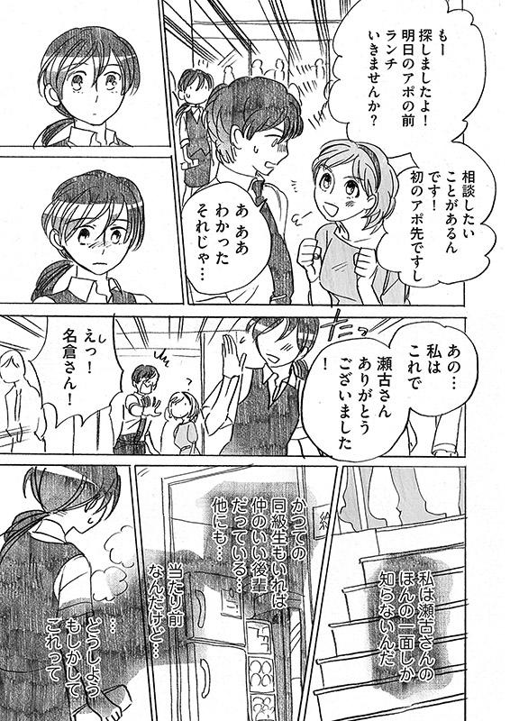 フツーのOLでもある駆け出し少女漫画家・名倉さんと担当編集の荒山さんと近藤さんは、いつも名倉さんのお仕事が終わった後の19時半から打ち合わせ。