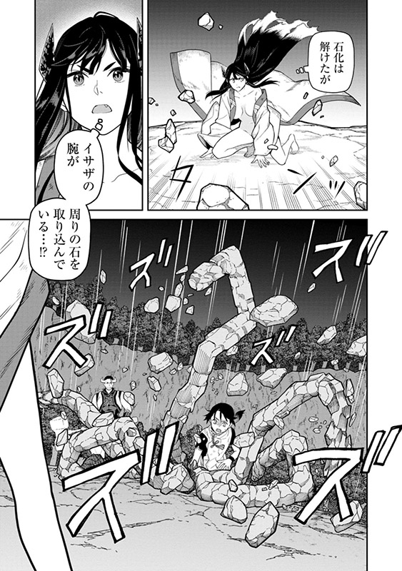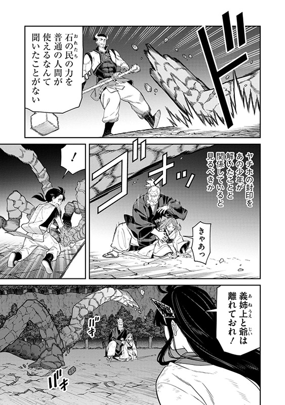 瑞穂領の領主の弟・宇迦乃イサザは、石を操る不思議な力を持つ「石の民」の女・ヤチホの助力を得て、内乱の窮地を脱する。