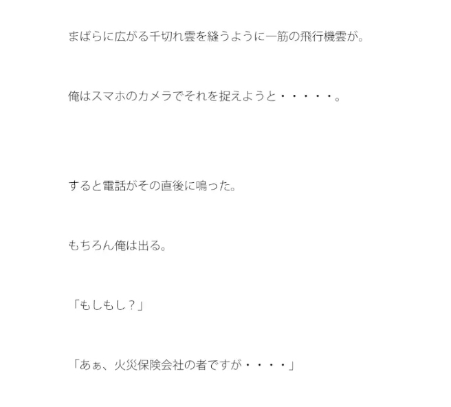 まばらに広がる千切れ雲を縫うように一筋の飛行機雲が。