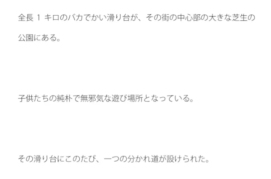 全長1キロのバカでかい滑り台が、その街の中心部の大きな芝生の公園にある。
