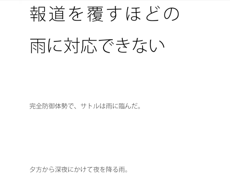 ・・・・・傘を持っていないと不気味なことになるぞ、と。ニュースでキャスターがメガネの縁に手をかけていた。