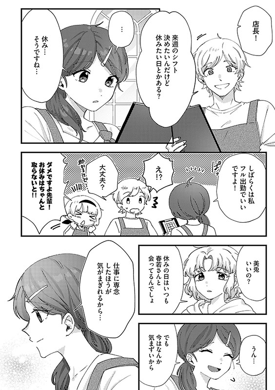 ヤクザ風保育士・春若と花屋の純朴店員・美兎の