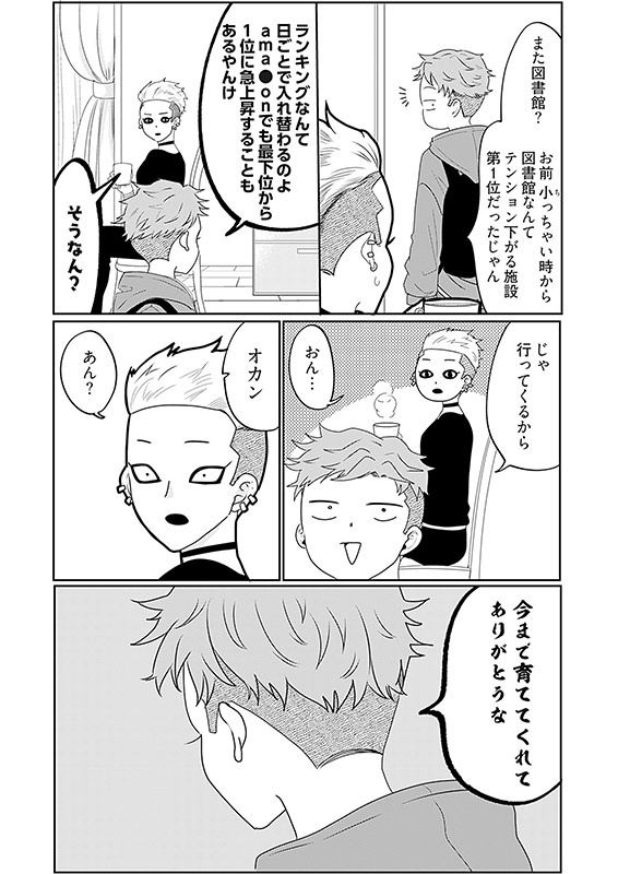 岩鬼はシングルマザーで息子を育てつつパンクロッカーのボーカルをしている。とはいえパンクロッカーには似つかわしくない真面目さで、息子がバレンタインにもらったチョコのお返しに手作りせねばと思い立つ。 レシピ本を求め図書館に向かうと爽やかでイケメンの司書が丁寧に対応してくれて…!【ズズズキュン!】