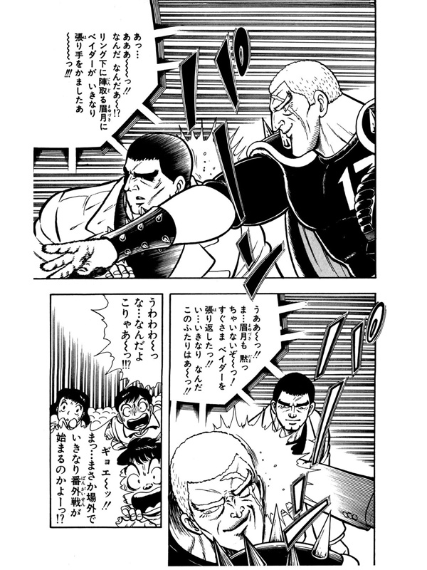 剛気はタイトルマッチに勝利し日本チャンピオンとなるが、試合後リングに乱入した謎の男・黒田によって滅多打ちにされてしまう。リングサイドで試合を見ていた強気がリングに乗り込みバックドロップで黒田を倒すが、そのあとリング上は大乱闘…。
