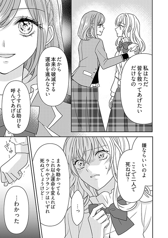 学園に入学後、死亡フラグを折るためにもゲームのヒロイン・メリルとラウルをどうにか引き合わせようとするサリエル。しかしダンスパーティーでの思いもよらぬハプニングをきっかけにナゼかラウル以外の攻略対象者とも親密になってしまい死亡フラグ乱立の危機…!?