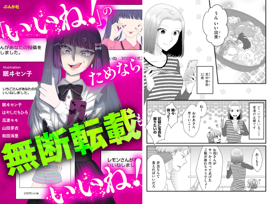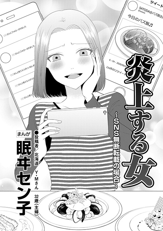 “いいね”のためなら他人の写真も使う無断転載女、スマホで家族の行動を監視する束縛母、SNSキラキラ偽装OL…etc、いきすぎた承認欲求で身を滅ぼし転落していく女たち!! ★収録作品 「炎上する女 〜SNS無断転載の場合〜」眠ヰセン子 「SNSキラキラ40女」はやしだちひろ 「訳ありインフルエンサー」瓜渡モモ 「SNSぼっち」山田芽衣 「母のSNSショック!?」和田海里