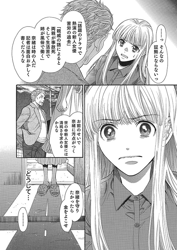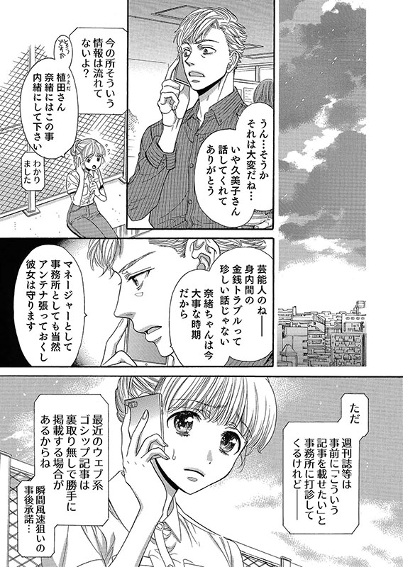 事実無根でも記事が出てしまったら奈緒の将来に関わる。どうすれば…!?篠田に相談したいが、この件で少しでも彼の愛情が曇ってしまったら…と思うと怖くて話す事が出来ない。