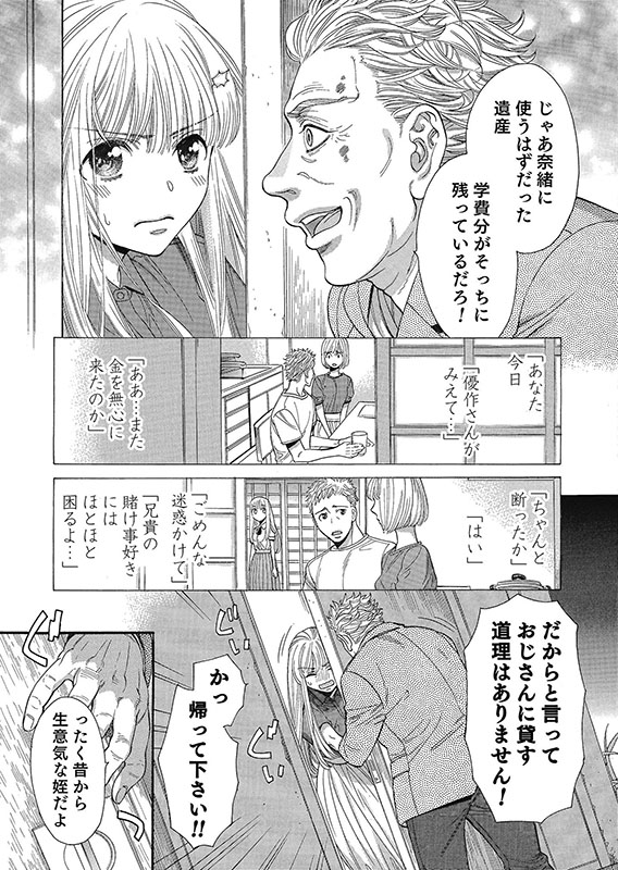 突然現れたおじ、優作の用件は、久美子の予想通り金の無心だった。そんな金は無いと突っぱねたが、それならば醜聞を週刊誌に売ると言い出して…。
