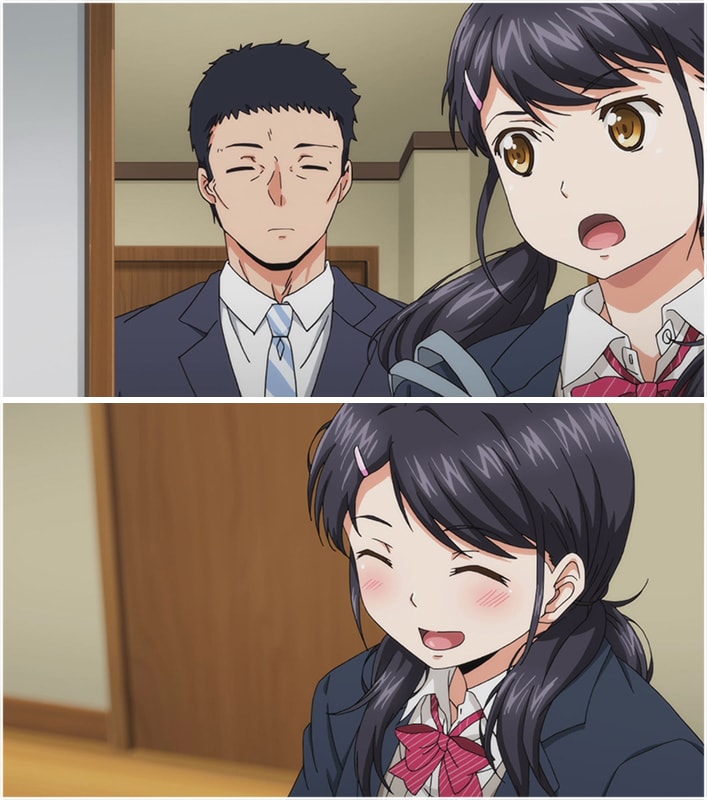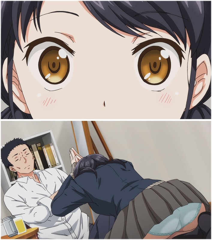 美崎茜と波佐間健は大家の契約ミスで一週間同居することになる。見知らぬ男だったが茜はネクタイが曲がっているのを直したりしてなにかと気に掛けてしまう。波佐間も疲れて帰ってくる茜のために食事を用意してくれたしして気を遣っているようだ。会話が弾む時間は家族と過ごした時には経験したことが無かった。茜はこの生活が心地いいものだと感じ始めていることを波佐間に悟られないようにカバンの中を整理し始める。そして三者面談が明日あることに気づくのであった。叔父のふりをして出て欲しいと頼み込む茜、波佐間は行く気がなかったが茜の事情を察して協力することになる。翌日、無事に三者面談を終え波佐間はなつかしさから校内を歩き回り人気のいない屋上へ続く階段にたどり着く。突然に近くを通った人から反射的に身を隠す、隠れるために身体を密着させた二人。ヤリ場と言われていた場所の雰囲気のせいか波佐間の手はあかねのお尻をまさぐりはじめるのであった。