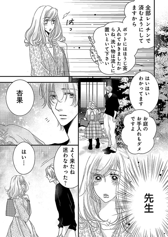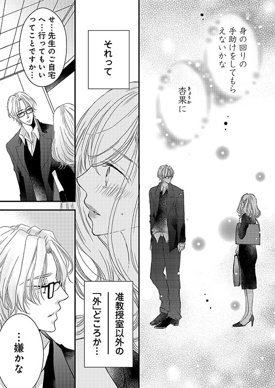 先生の身の回りのお世話を私が…!?思わぬ展開だけど嬉しい!後日、先生の家を訪ねた私は、この家に今までの女の人達が来ていない事を知り、自分が先生の特別になったような気がしてしまう。