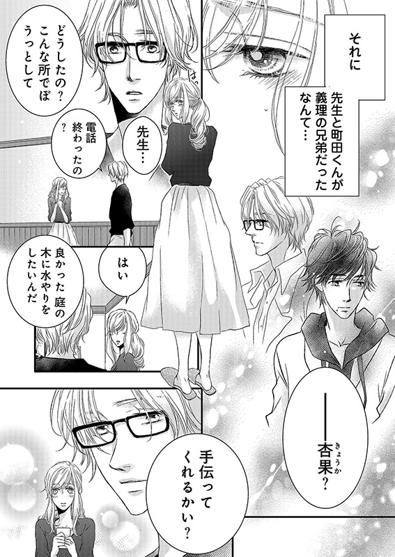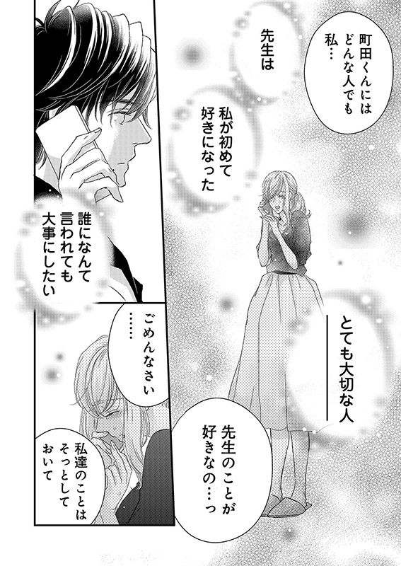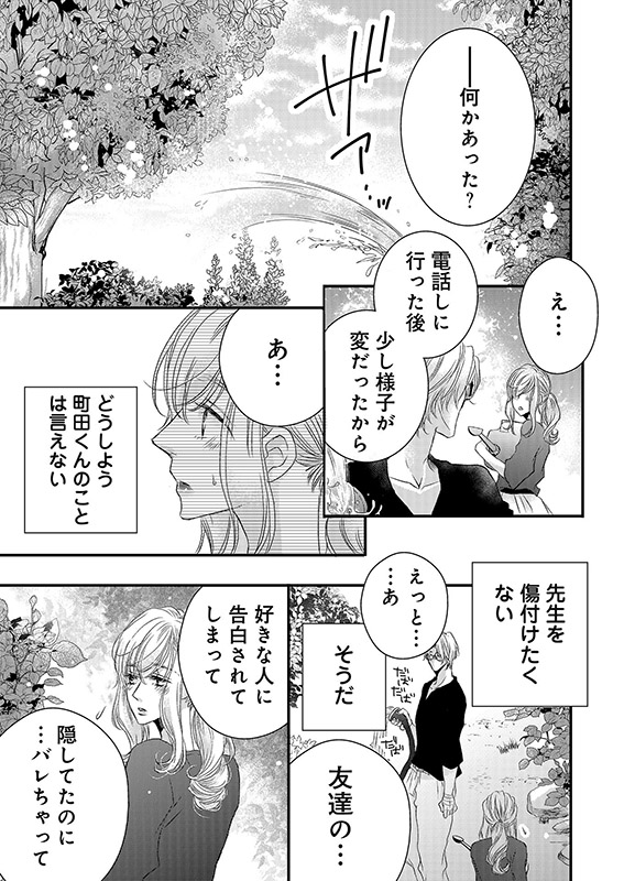 先生と町田くんが兄弟…!?電話を切った後、先生からどうしたのか訊かれたけれど、とても話せなかった。それになるみの事もなんとかしなくちゃ…。なるみとちゃんと話さないと…。しかしなるみと話す前に、事件が!先生との密会現場写真を載せたビラが校内に張り出されて、私達の関係が大学中の噂に!!