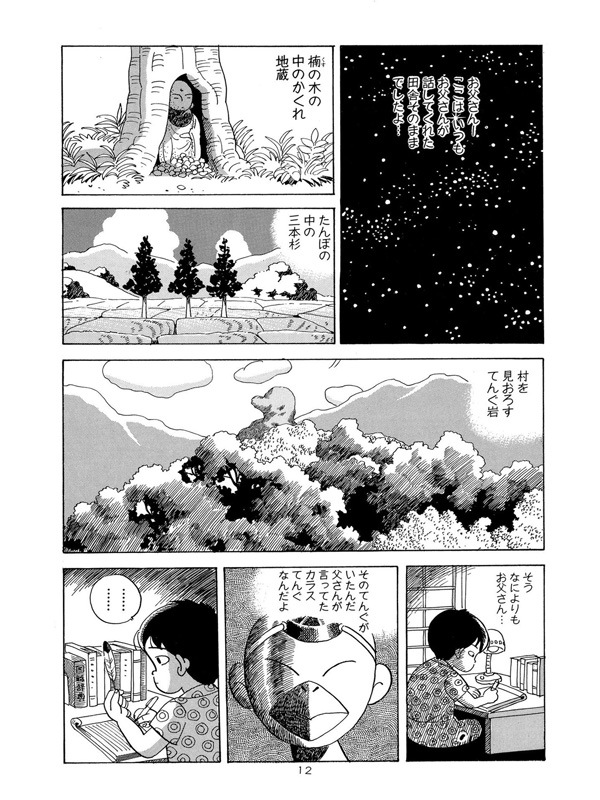 田舎の学校に転校してきた少年・木村カオル。そこは女子生徒の大原チアキ一人と先生一人だけの小さな分校だったが、前の所よりもカオルには居心地がよかった。そんなときカオルは風と共に現れた不思議な少年を校庭に見かける。チアキは「あいつは自分をてんぐだと思ってるばかな奴さ」と言うが…。 「てんぐの弁当箱<前編>」「てんぐの弁当箱<後編>」を含む、「おじいちゃんの硯箱」」「古井戸」「天井裏の恋人」「おかめの散歩」の6作品を収録。佐藤智一の少し不思議な物語集。