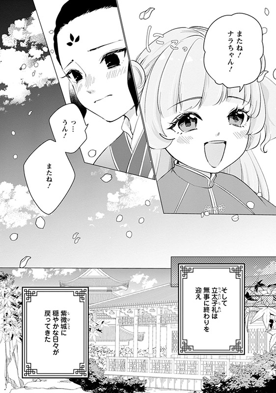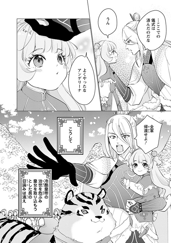 冷酷皇帝の父・フェイロンの治世を危ぶみアンゲリーナを取り込もうとした立太子礼は、アンゲリーナとナラの願いと奇跡によって無事に結末を迎え、穏やかな日々が戻ってきた。