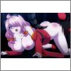 振袖を着て、胸元も裾も大きく着崩しており、巨乳とムチムチの太もも(巨大な陰嚢のイメージ)をさらけ出している。