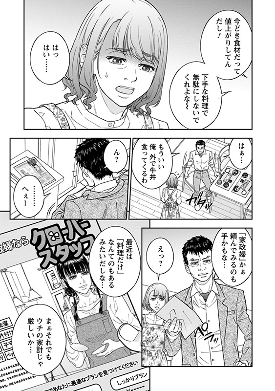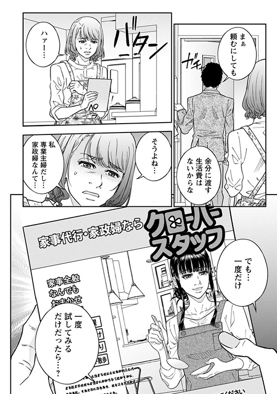誰にも言えない家庭のトラブル、きれいに消しちゃいます……。ミステリアスな雰囲気のクールビューティーにして、仕事はテキパキこなし、コミュ力も高い家政婦、通称ケシコ。心を許した顧客たちは、夫との関係等の深刻な悩みを自然と彼女に打ち明ける。そのタイミングでケシコが提案するエグい裏サービスメニューとは!?