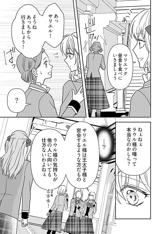 学園に入学後、死亡フラグを折るためにもゲームのヒロイン・メリルとラウルをどうにか引き合わせようとするサリエル。