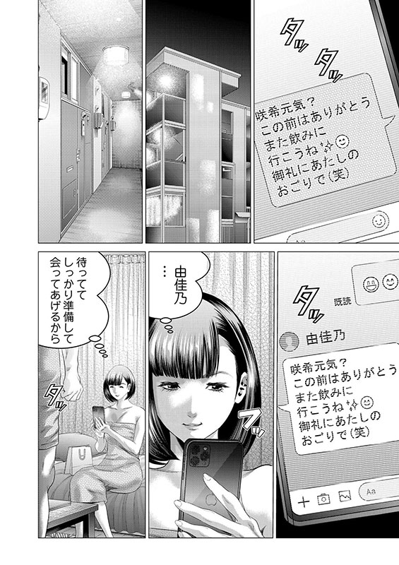 結婚を約束した彼氏・弘夢(ひろむ)がいるにも関わらず、友人・咲希(さき)と合コンにいそしむ主人公・由佳乃(ゆかの)。